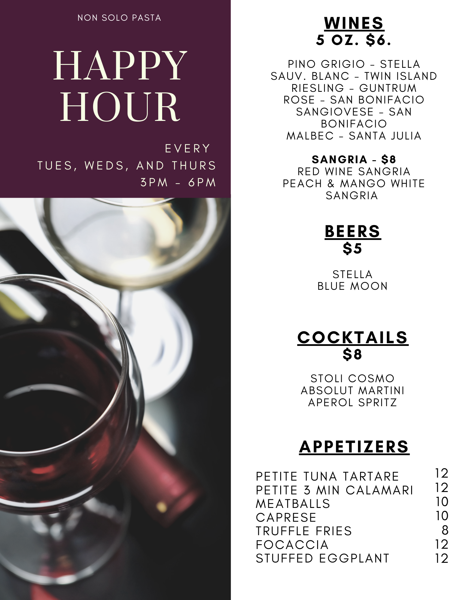 Now entering its 28th year in business, Non Solo Pasta is a true taste of Italy, offering both traditional and modern dishes inspired by my coastal hometown in southern Italy. Our specials menu are updated daily to highlight the freshest seasonal ingredients, with every dish crafted from scratch.